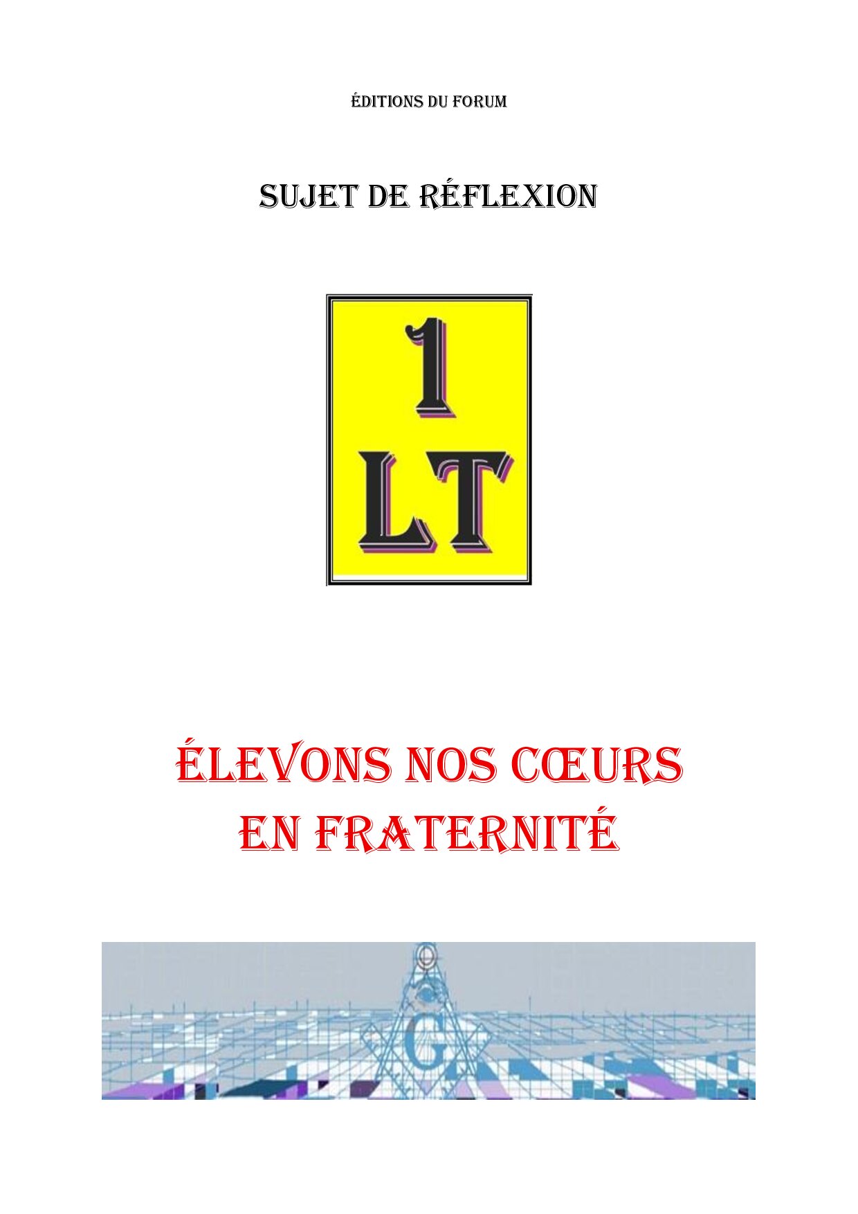 Il propose l’étude du Sujet de Réflexion intitulé : Élevons nos cœurs en fraternité – Un Le Tout.