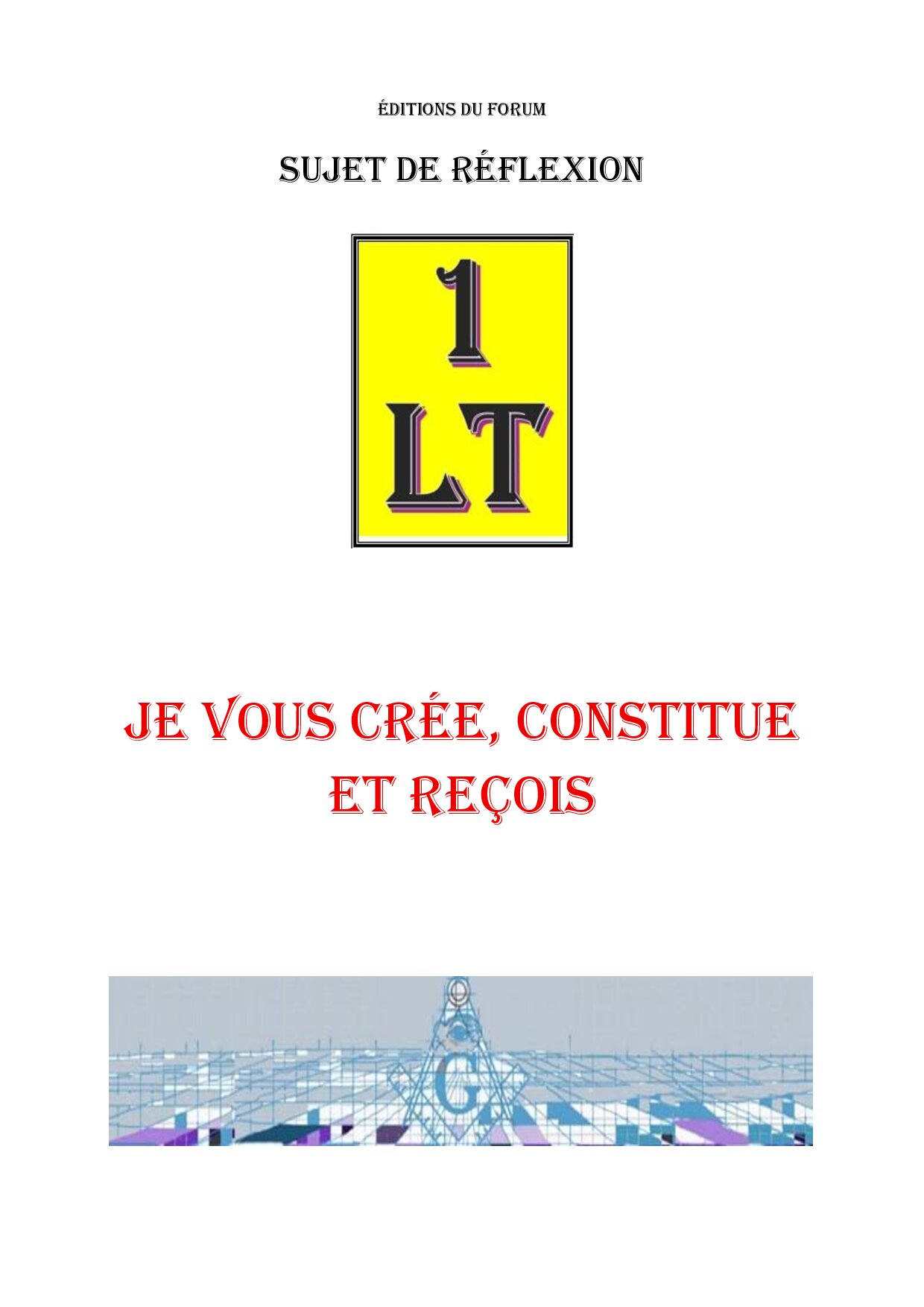 Il propose l’étude du Sujet de Réflexion intitulé : Je vous crée, constitue et reçois, le temps fort d’une initiation – Un Le Tout.