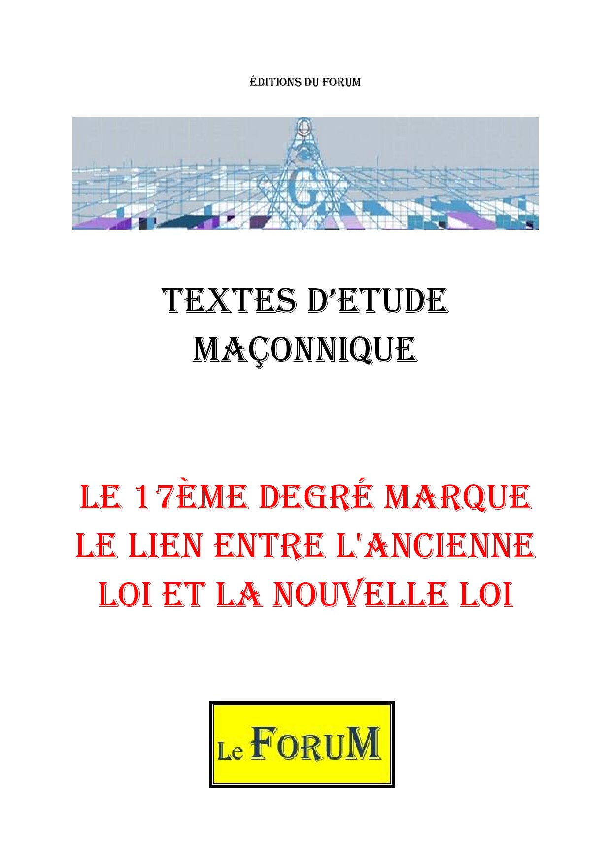 Ce Corpus – Le 17ème degré marque le lien entre l’ancienne Loi et la nouvelle Loi – Corpus : – de 5730 mots sur 18 pages, comporte : Une Accroche sur le Sujet de Réflexion, plus trois Textes d’Etude Maçonnique.