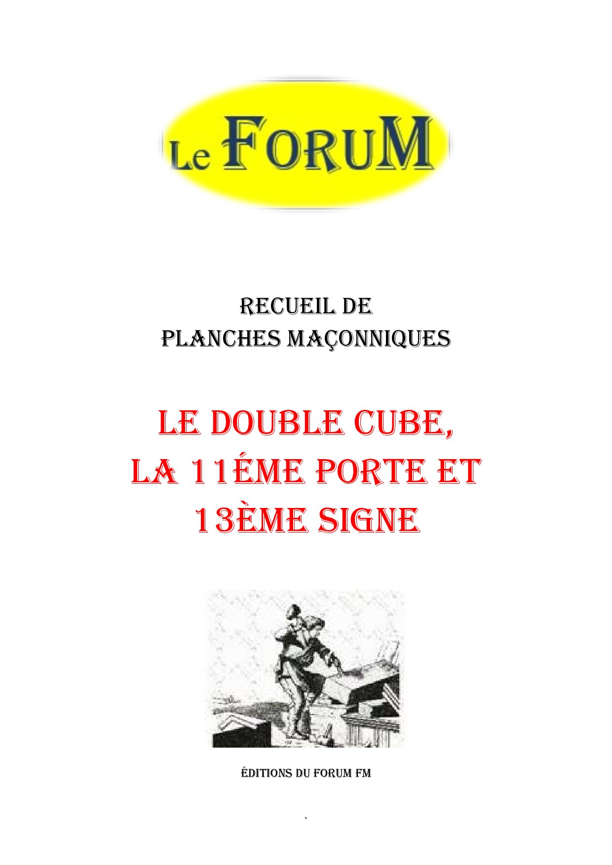 Il propose le Sujet de Réflexion – Le Double Cube, la 11éme porte et le 13ème signe : Le nécessaire pour faire le tour des idées sur ce sujet et vous ouvrir suffisamment de portes pour que vous puissiez rédiger une belle planche sur ce sujet.