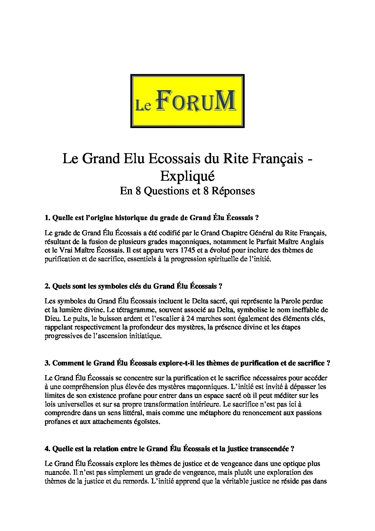 Ce Travail sur – Le Grand Elu Ecossais du Rite Français – Expliqué : En 8 Questions et 8 Réponses – Comporte 653 mots et s’expose en 5 minutes avec une lecture Réaliste.