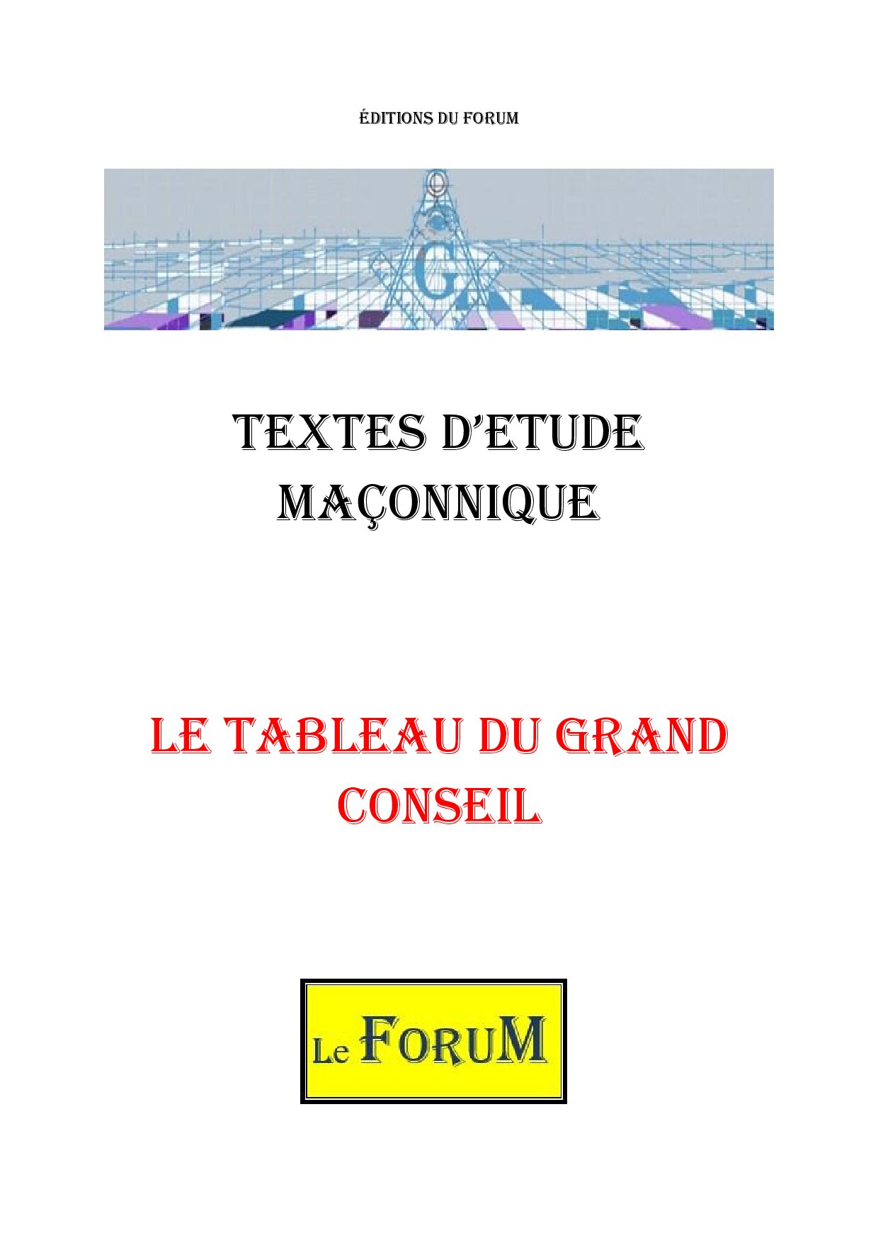 Ce Corpus – Le tableau du Grand Conseil – Corpus : – de 6999 mots sur 19 pages, comporte : Une Accroche sur le Sujet de Réflexion, plus trois Textes d’Etude Maçonnique.
