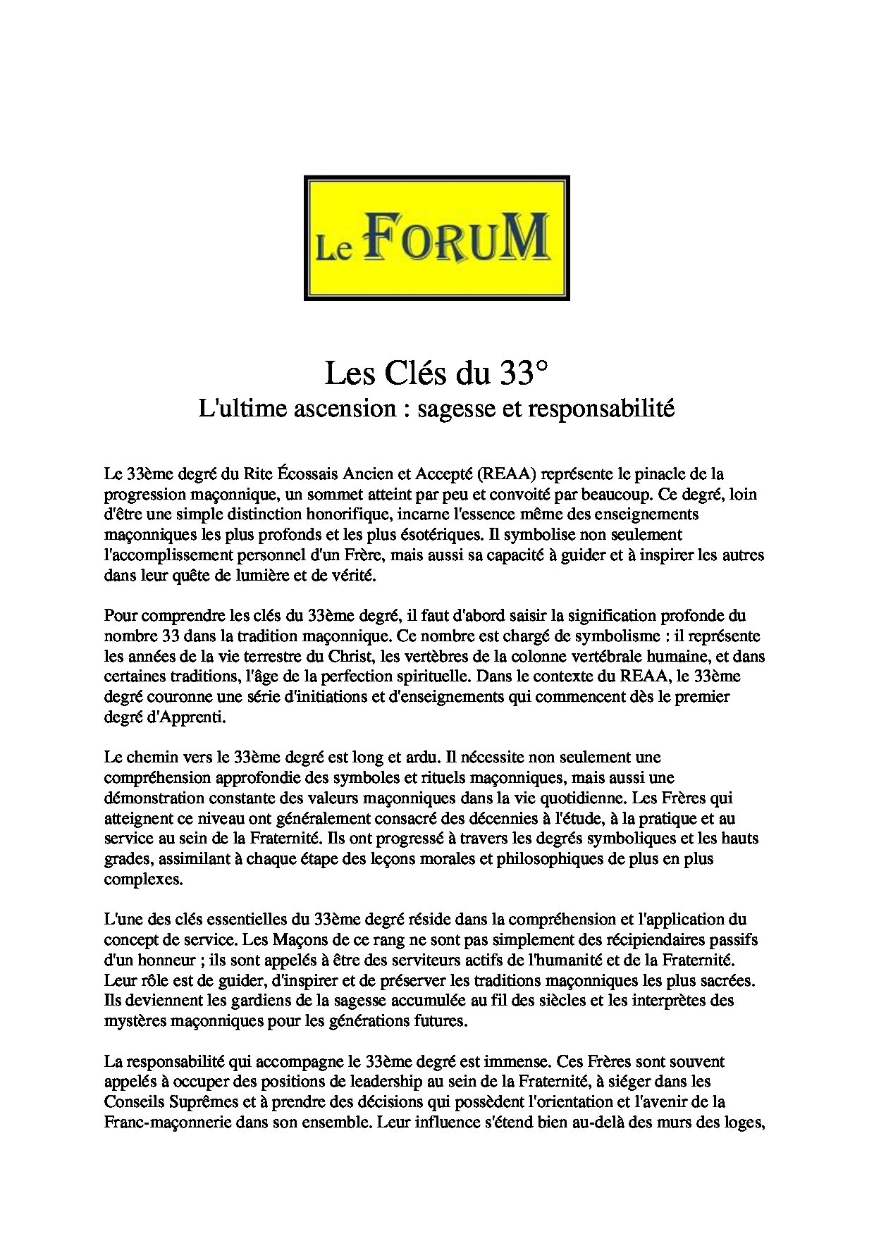 Ce Travail sur – Les Clés du 33° : L’ultime ascension : sagesse et responsabilité – Comporte 1312 mots et s’expose en 10 minutes avec une lecture Réaliste.