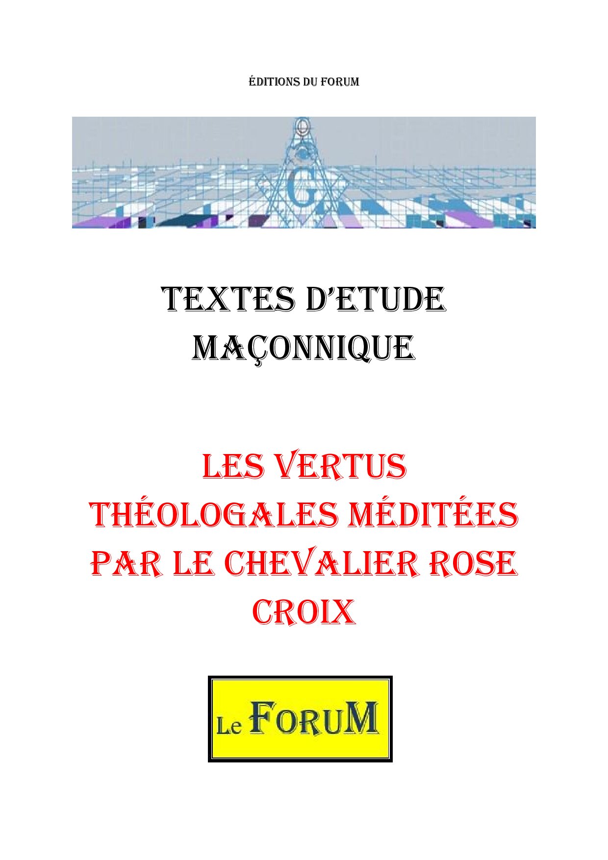 Ce Corpus – Les vertus théologales méditées par le Chevalier Rose Croix – Corpus : – de 4952 mots sur 15 pages, comporte : Une Accroche sur le Sujet de Réflexion, plus trois Textes d’Etude Maçonnique.
