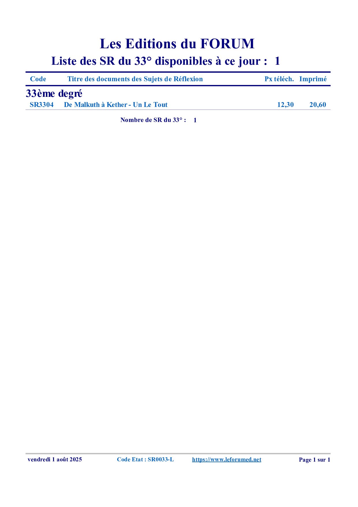 Liste des Sujets de Réflexion au 33° – Un Le Tout