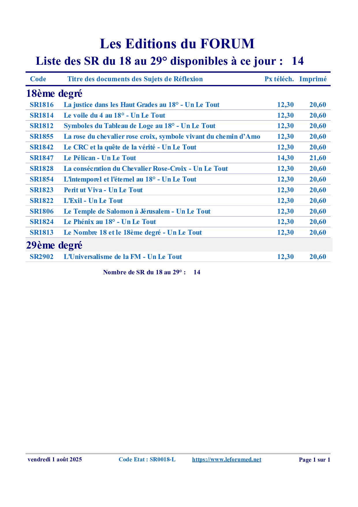 Liste de tous les Sujets de Réflexion de la collection « Un Le Tout » (SR) disponibles dans LE FORUM FM.