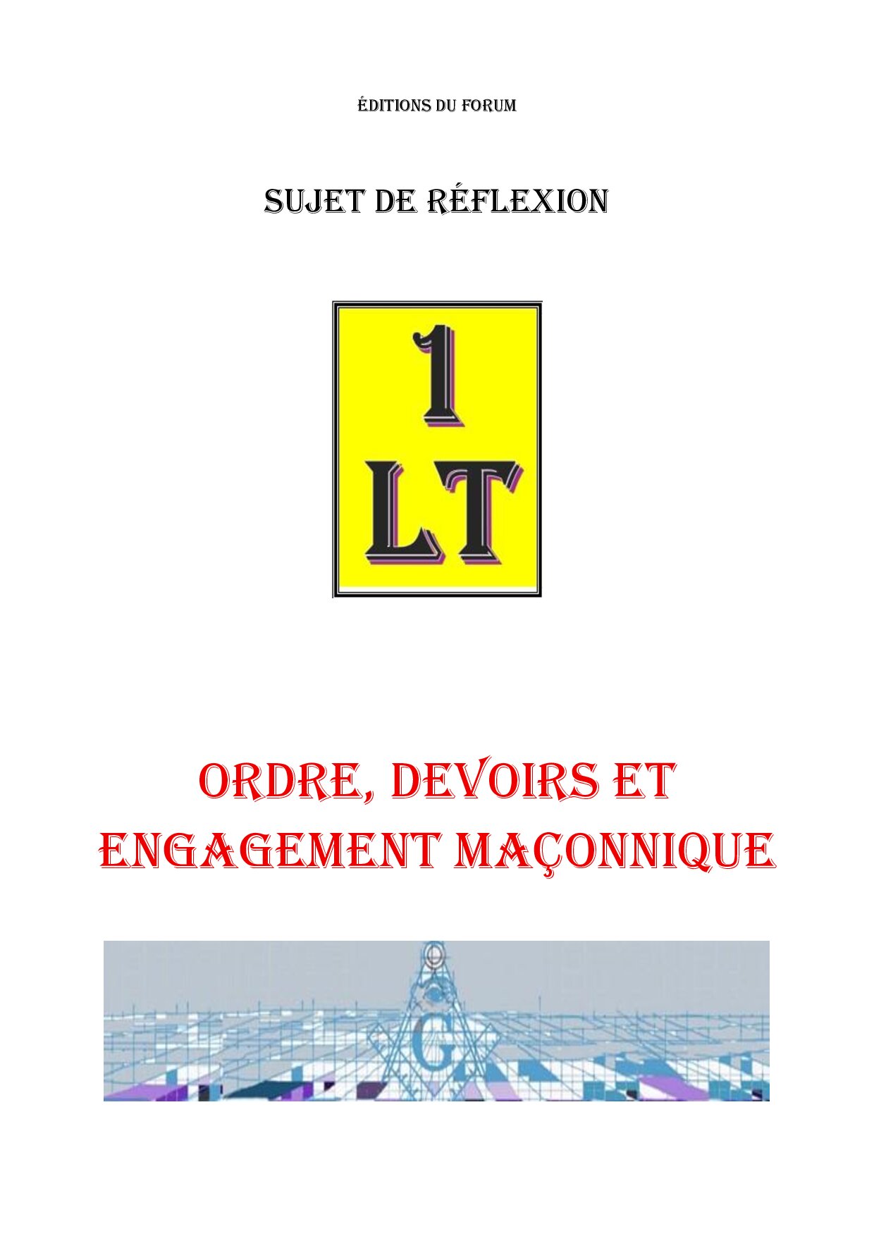 Il propose l’étude du Sujet de Réflexion intitulé : Ordre, devoirs et engagement maçonnique – Un Le Tout.