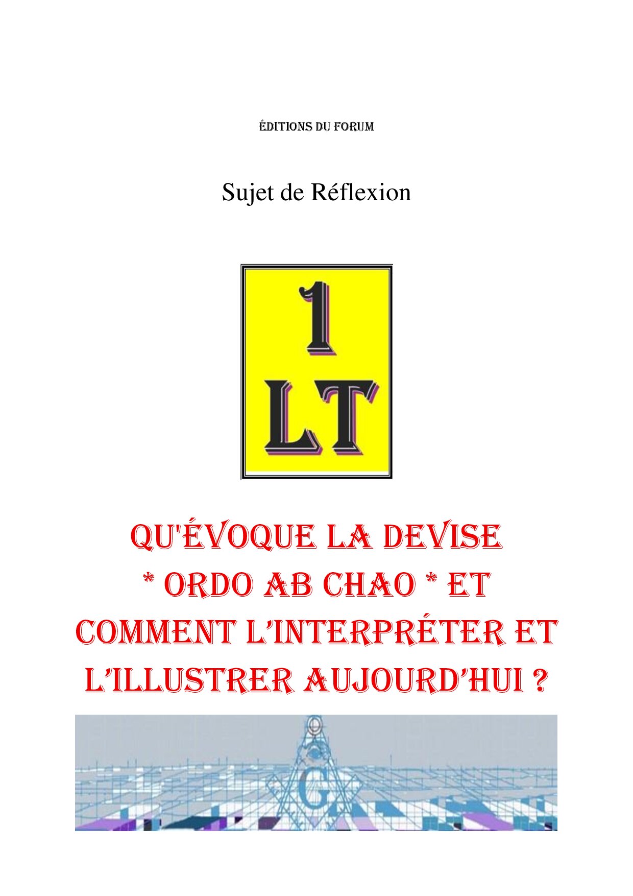 Il propose l’étude du Sujet de Réflexion intitulé : Qu’évoque la devise Ordo ab chao et comment l’interpréter et l’illustrer aujourd’hui ? – Un Le Tout.