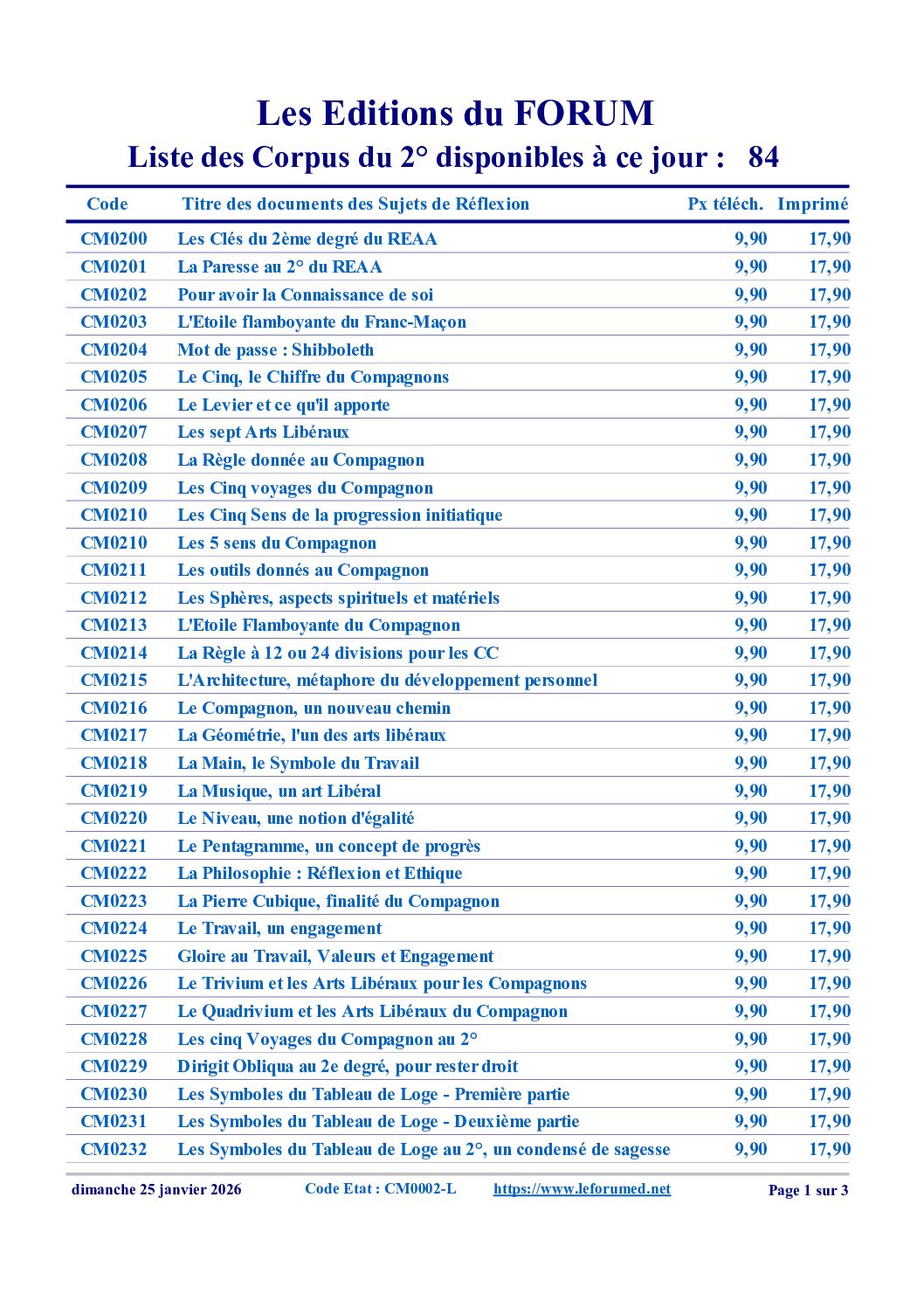 Cet article du FORUM FM vous propose d’acquérir 25 Corpus du 2°, ceux que vous jugerez nécessaires à la formation des Compagnons. C’est vous qui choisissez ce que cette bibliothèque comprendra.
